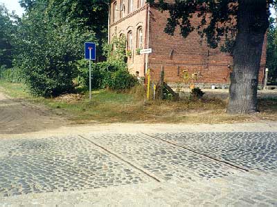 Letzter Gleisrest in der Groß Kreutzer Bahnhofstraße in der Nähe