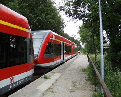 ![]() Bahnhof Schmachtenhagen mit zwei Dieseltriebwagen der DB AG. Bedienung derzeit nur am Wochende. |